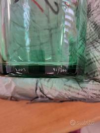 Vaso Troncocono Cristallo, Verde Erba, ganci rosso-nero 'Carlo Moretti' con certificato.
