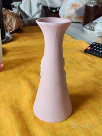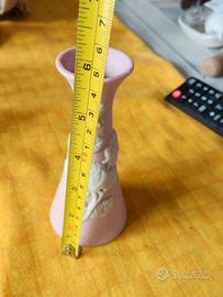 vaso in ceramica rosa con motivo floreale in rilievo. Misure in foto