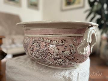 Vendo come descrizione splendido vaso dipinto a mano in ottime condizioni. Misure ovale 48 cm x 41,5 cm, altezza 22 cm. Solo consegna a mano. Non rispondo ad offerte al ribasso