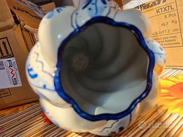 Vaso In Ceramica Maiolica Deruta Blu Altezza 19Cmx10 .Ha 2 piccole battute sulla base del vaso come si evidenzia da foto.
