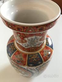 Raffinato vaso in ceramica artistica Made in Italy, splendido esempio di stile Chinoiserie della metà del XX secolo. L'oggetto fonde la maestria della tradizione ceramista italiana con l'estetica orientale, presentando decori minuziosi dipinti a mano.