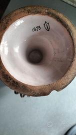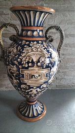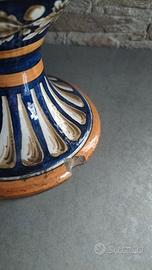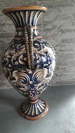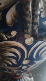 Questo oggetto è un vaso in ceramica decorato, molto realizzato in maiolica. Materiale: Decorazione: Presenta uno stile classico con motivi floreali e vegetali in blu e bianco, tipico della tradizione ceramica italiana. Purtroppo come si evidenzia in foto ha una piccola rottura sul laterale e una alla base. Altezza 40 cm Pancia 26 cm Diametro bocca 14 cm Si valutano proposte a fronte di quanto sopra indicato.