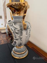 Vaso Ceramica Le Torri Italia Fascia e Manici Grigio/Oro.