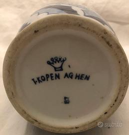 Vaso in ceramica bianco e azzurro firmato T-KOPENHAGEN. Imboccatura esagonale. Diametro base 14cm, altezza totale 35cm. Usato pochissimo. Le condizioni dell'oggetto sono come da foto; le foto sono parte integrante della descrizione dell'oggetto