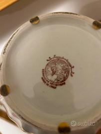 Vaso in Porcellana Bianca "Ceramiche Artistiche Made in Italy" con Decorazioni Floreali Rosa Antico - Bordeaux e Oro.