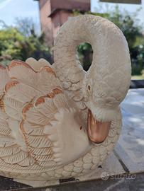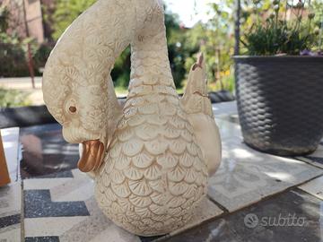 Vaso a forma di Cigno/Oca in coccio, dipinto a mano con sfumature bianche, panna e dorate, largo circa 20 cm ed alto circa 18 cm, 5 pezzi rimasti, 8€ l'uno