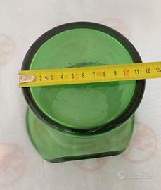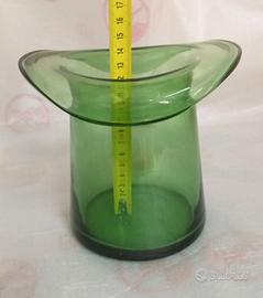 Vaso a forma di cappello cilindrico in vetro verde . Oggetto vintage