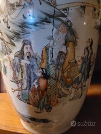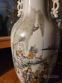 antico vaso cinese alto 57 cm con dettagli molto belli. leggermente scolorito da un lato co.e da foto.