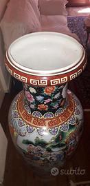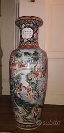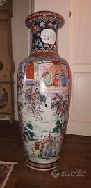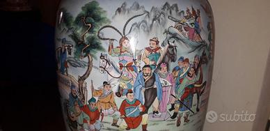 Grande vaso cinese dipinto finemente a mano con molteplici scene agresti e di battaglia. Altezza 128 cm.