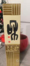Vaso cinese Ben augurale centimetri 35*7'5*7'5.Si tratta di un vaso in ceramica rettangolare con decorazioni caratteri cinesi . Il simbolo principale, scritto in nero, è il carattere cinese "福" (fú), che significa fortuna o benedizione. Questo tipo di oggetto è spesso utilizzato come amuleto o elemento decorativo per portare fortuna.