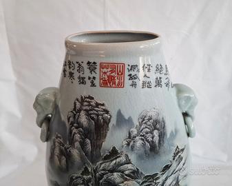 Vaso cinese con paesaggio innevato e decorazioni in rilievo con elefanti. Misure in foto, ottime condizioni.
