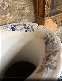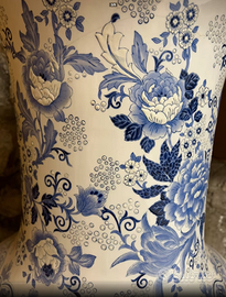 Vaso Cinese Blu di Chatam, vecchia manifattura. Include base in legno esotico di 30 cm. Colore: Bianco e Blu. Dimensioni: altezza 120cm (150 cm con base), diametro 50cm.