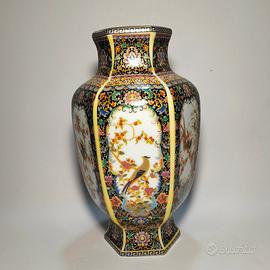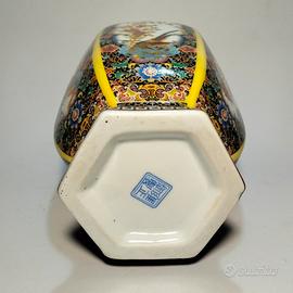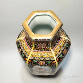 Vaso cinese a forma esagonale in massiccia porcellana decorata con uccellini e fiori. in ottime condizioni. Dimensioni: 24 x 14 CM 1,1 KG