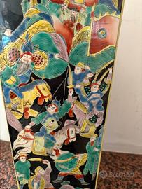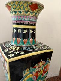 Vaso in porcellana nera con decorazione multicolore dipinta, realizzato in Cina all'inizio del '900. Appartenente alla "famiglia nera" o alla "famiglia verde". Marchio apocrifo.