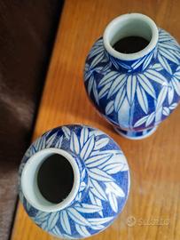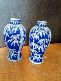 2 Vasi antichi cinesi con decorati bambu in colore blu. Altezza 18.