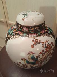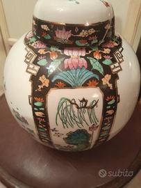 Vaso cinese in ceramica come in foto , con coperchio riparato come si può vedere dalla foto . Consegna Napoli centrale o Somma Vesuviana.
