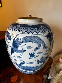 Vaso cinese originale con predisposizione al paralume o con ciotola di copertura.