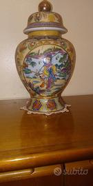 E' DECORATO CON RAFFIGURAZIONI DI FIORI E SCENE DI VITA QUOTIDIANA IN STILE TIPICAMENTE ORIENTALE.