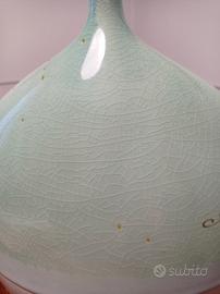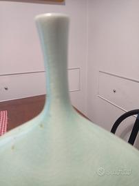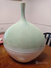 Vado monofore Claraluna,altezza cm 36, diametro 32, metà colore bianco, metà colore verde mare,lavorata