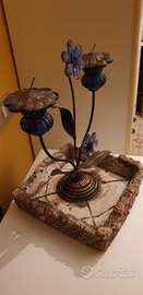 NUOVO!Vendo vaso ornamentale in terracotta con decorazioni in fiori in lega e due candele, per composizioni di piante grasse. Misure base 20cm x 20cm e altezza totale 32 cm. Idea regalo particolare ed originale.