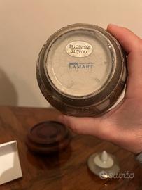 Vaso con coperchio in ceramica SATSUMA Lamart – dipinto a mano – base in legno