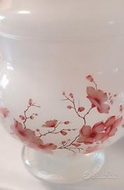 Vaso con coperchio in vetro opalino con disegni di fiori di ciliegio.