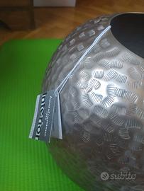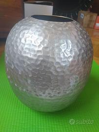 Vaso in alluminio satinato con decorazioni sulla superficie come da foto, con diametro della bocca 10cm, altezza del vaso 25cm. Sottovaso in velluto nero