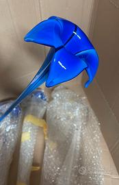 Vendo vaso in cristallo con piede in argento alto 38 cm, con tre fiori in cristallo alti 49 cm.