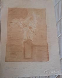 Acquarello di vaso con fiori su foglio di carta P.M.E. Raffaello, del pittore Carlo Canevari ( 1922-1996) pervenuto da contatti artistici della famiglia con il Pittore.