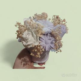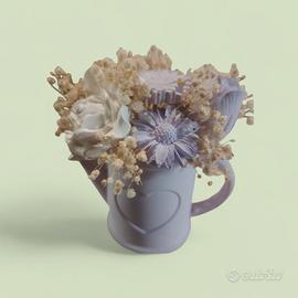 Vaso a forma di annaffiatoio in gesso con fiori di cera di soia profumati color glicine