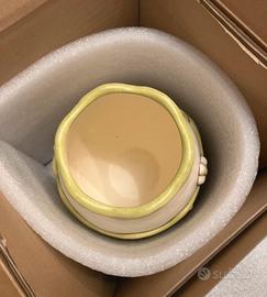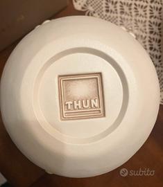 Elegante vaso THUN con margherite e un delicato fiocco verde (in rilievo); è perfetto per decorare la tua casa e riporre fiori che diano un tocco di colore e serenità. In ceramica decorata a mano - altezza cm 18 - diametro foro cm 10 Nuovo nella sua confezione originale Ritiro a mano