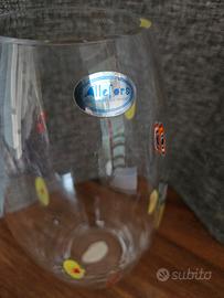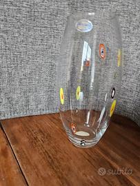 Vaso trasparente con murrine multicolori con lavorazione Murano marca Allefors. Il vaso è alto 25 cm e ha una bocca di 6,5 cm.