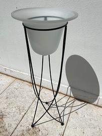 Vado in vetro opaco su piedistallo in metallo, elegante e di bella presenza, da usare per riporvi fiori o candele, come portaoggetti, ecc.