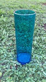 Vaso in vetro blu con portavaso in ferro, ottime condizioni, epoca fine anni settanta rimodernato con effetto shabby chic.