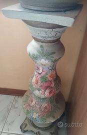 vintage colonna con porta vaso pitturato a mano ceramica