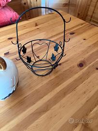 Vendo vaso in ceramica lo completa il porta vaso in ferro battuto con ganci laterali porta oggetti.