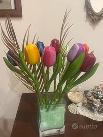 Semplice vaso ma con Tulipani colorati in legno, condizioni più che buone