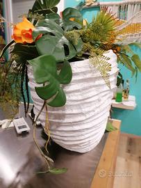 Vaso conchiglia con fiori finti in ceramica altezza 40 x 20 x 40cm. circa. Venire a vedere a Cervia , tutte le mattine escluso domenica.prezzo50euro