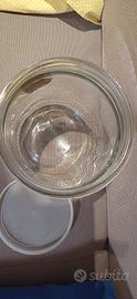 Vaso contenitore cilindrico in vetro trasparente con coperchio in plastica in perfette condizioni, come nuovo.