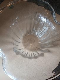 vaso in vetro di Murano a forma di ventaglio,lavorazione ondulata con bolle d'aria,vintage anno '30 originale, non firmato,bellissimo vaso in ottime condizioni ,la forma ampia e aperta lo rende idea