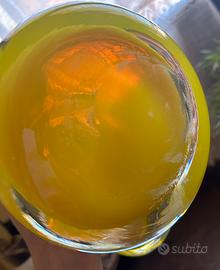 Vaso in vetro a forma di Cornucopia trasparente con righe e particolari giallo vivo, vaso periodo liberty ha alcuni segni ma per il resto è perfetto