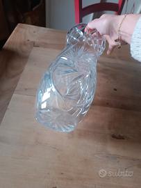 vaso in cristallo molato, vintage. con un motivo decorativo complesso e tagliato a mano.La parte superiore ha un motivo a rombi incrociati.La parte inferiore presenta un motivo a raggi o stella che si irradia verso l'alto.