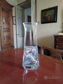 VASO IN CRISTALLO CON PLACCA IN ARGENTO "OTTAVIANI MAGNITUDO ARTIST " LAVORAZIONE ARTIGIANALE H. 32 CM. LARGH. 10 CM.