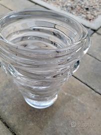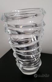 Elegante vaso in cristallo a forma ovale con un design a spirale che cattura la luce.