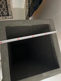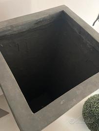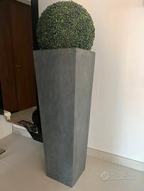 Vaso grigio tipo cemento con decoro verde tipo siepe rotonda