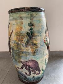 21.5 cm di diametro x 46 cm di altezza. Ceramiche Italia Albisola fabbrica nasce come "Soesco" nel 1946, diviene "Rayon" dal 1949 al 1951, "Cooperativa Ceramisti Italia" dal 1951 al 1953. Dipinto a mano. Made in Italy