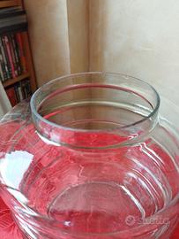 Vendo vaso per biscotti / caramelle o altro , in vetro soffiato a mano e coperchio in alluminio marcato Caviglietto Leini , in ottime condizioni. La presenza di minime irregolarità (bolle d'aria ) è sinonimo di esecuzione a mano di ogni singolo pezzo . Condizioni come da foto. Altezza 23 cm diametro 18 cm e diametro coperchio 10 cm. Si segnala la presenza di millimetriche imperfezioni del vetro dovute al taglio del diametro . Spese a carico del destinatario.