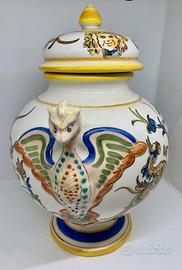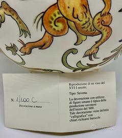 Grande vaso da farmacia in ceramica dipinta a mano. Preziosa riproduzione in edizione numerata di un celebre vaso da farmacia del XVII secolo.