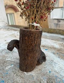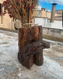 Vaso da fiori realizzato artigianalmente in legno di ulivo.