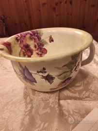 recupero di un vecchio vaso da notte con tecnica di decorazione floreale fatta a mano. diametro 22
